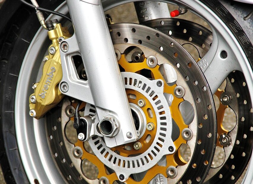 Stabdžių sistema reikalauja dėmesio, kitaip gali baigtis liūdnai. Diskiniai stabdžiai nusidėvi – kaladėlės turi būti keičiamos kas 500-1000 km, priklausomai nuo važiavimo stiliaus ir sąlygų. Jei girdite cypimą ar girgždėjimą stabdant – laikas tikrinti.